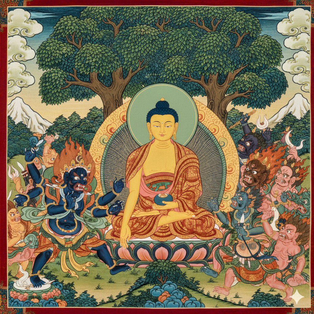 कथा-भगवान बुद्ध यांनी भूमि स्पर्श करून मार राक्षसाला दिली होती पृथ्वी ची साक्ष