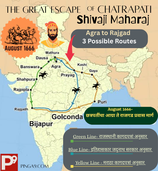 आग्रा- मथुरा व त्या पुढचा राजगडापर्यंतचा प्रवास कुठल्या मार्गाने?