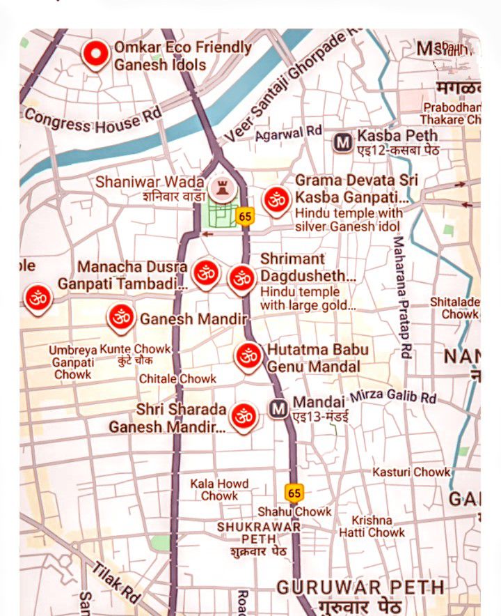 कसबा मेट्रो स्थानका वरून पुण्याचे मानाचे ५ गणपती अगदी जवळ आहेत- चालत इतर ही महत्वाच्या गणपतींचे दर्शन घेवू शकाल